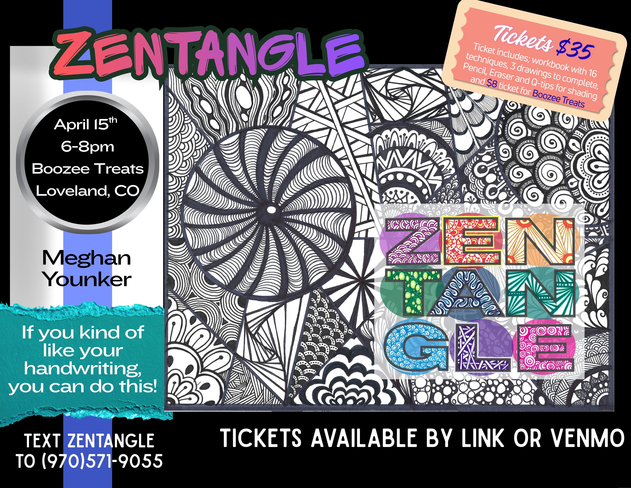 Having this skill in your back pocket is a wonderful way to relax in the fast-paced digital world we live in, this is why it is called ZEN-tangle. Click on the photo for the link to purchase tickets.